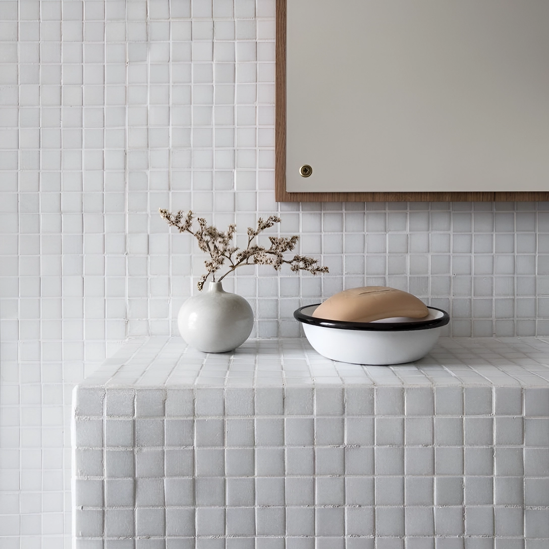 De flesta kulörer är lämpade för både golv och vägg och passar perfekt ihop med exempelvis kalksten i badrum. För duschhörnor, ångduschar och ångbastur är mosaiken ett praktiskt och vackert val, smidigt monterad på nät för enkel installation.