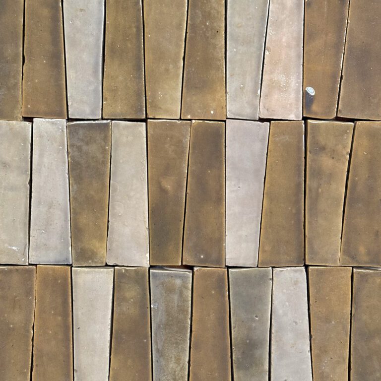 Tillverkningen av zellige-kakel kräver äkta hantverksskicklighet. Våra marockanska hantverkare börjar som lärlingar hos Maâlems (mästare inom hantverket), för att lära sig det traditionella hantverket som gått i arv i generationer. Historiskt användes zellige i geometriska och blommiga mönster för att pryda de vackraste palatsen och riaderna. Nu finns detta fantastiska hantverk tillgängligt för att pryda ditt hem.