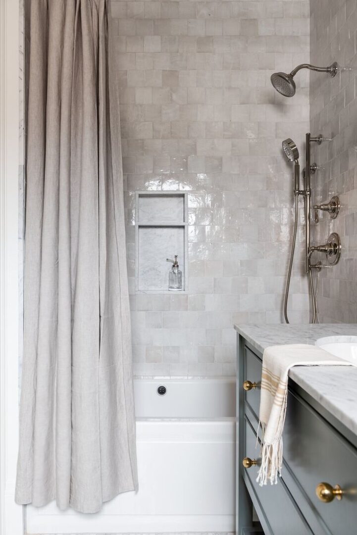 neutralt marockanskt zellige-kakel i nyanser av beige och grått