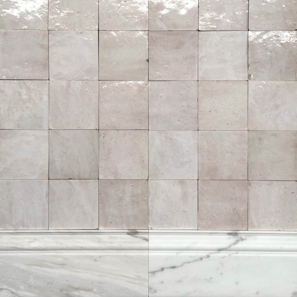 Roman Border, en dekorativ bård i marmor som fungerar perfekt att kombinera med våra 1×1-marmormosaiker. Den skapar ett harmoniskt och stilfullt uttryck och lyfter kaklets detaljer på ett elegant sätt.