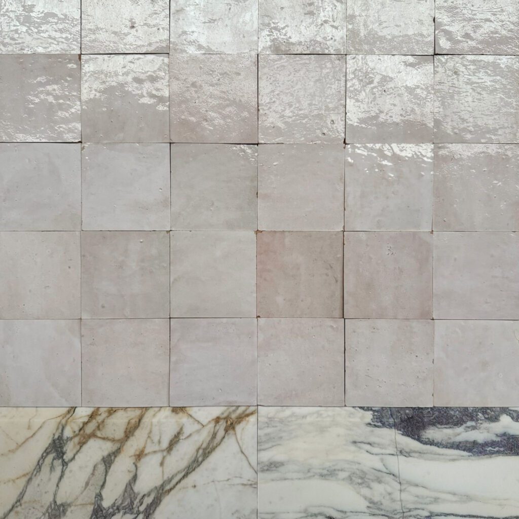 Marmorns naturliga ådring får ta plats och varierar tydligt mellan varje listbit, med skiftningar i både mönster och intensitet som ger ett levande och exklusivt uttryck.