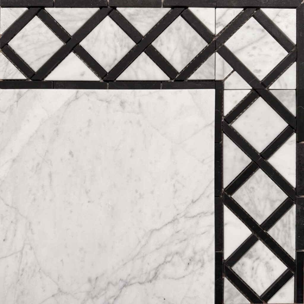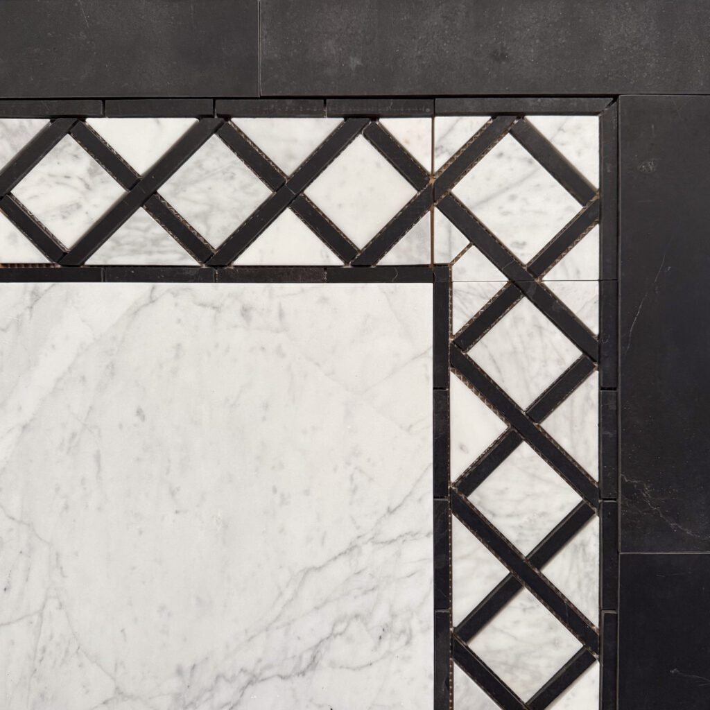 Bårder i carrara och svart marmor.