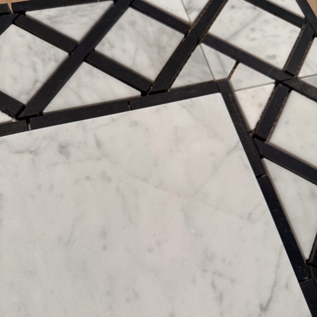 Hörn i carrara och svart marmor.