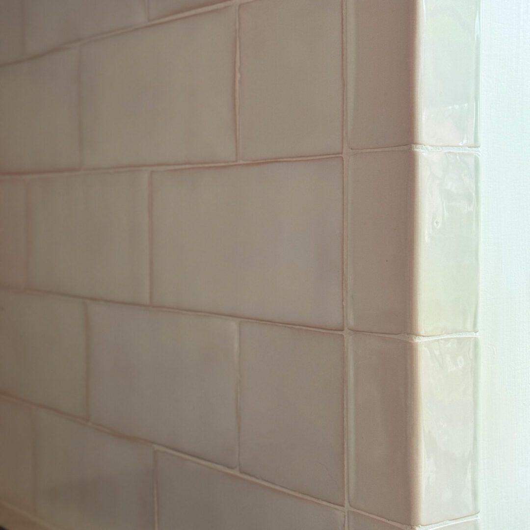 Artesenal Eggshell är ett handgjort kakel där plattorna varierar något i storlek både på bredden, höjden och längden. Fogen kommer att bli olika bred och kanterna på kaklet är ofta lite ”veckiga” som spår efter att de skurits för hand. Artesenal är subtilt rustik brukar vi säga.