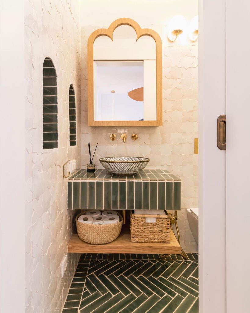 Artesenal Tempest green är ett handgjort kakel där plattorna varierar något i storlek både på bredden, höjden och längden. Fogen kommer att bli olika bred och kanterna på kaklet är ofta lite ”veckiga” som spår efter att de skurits för hand. Artesenal är subtilt rustik brukar vi säga .