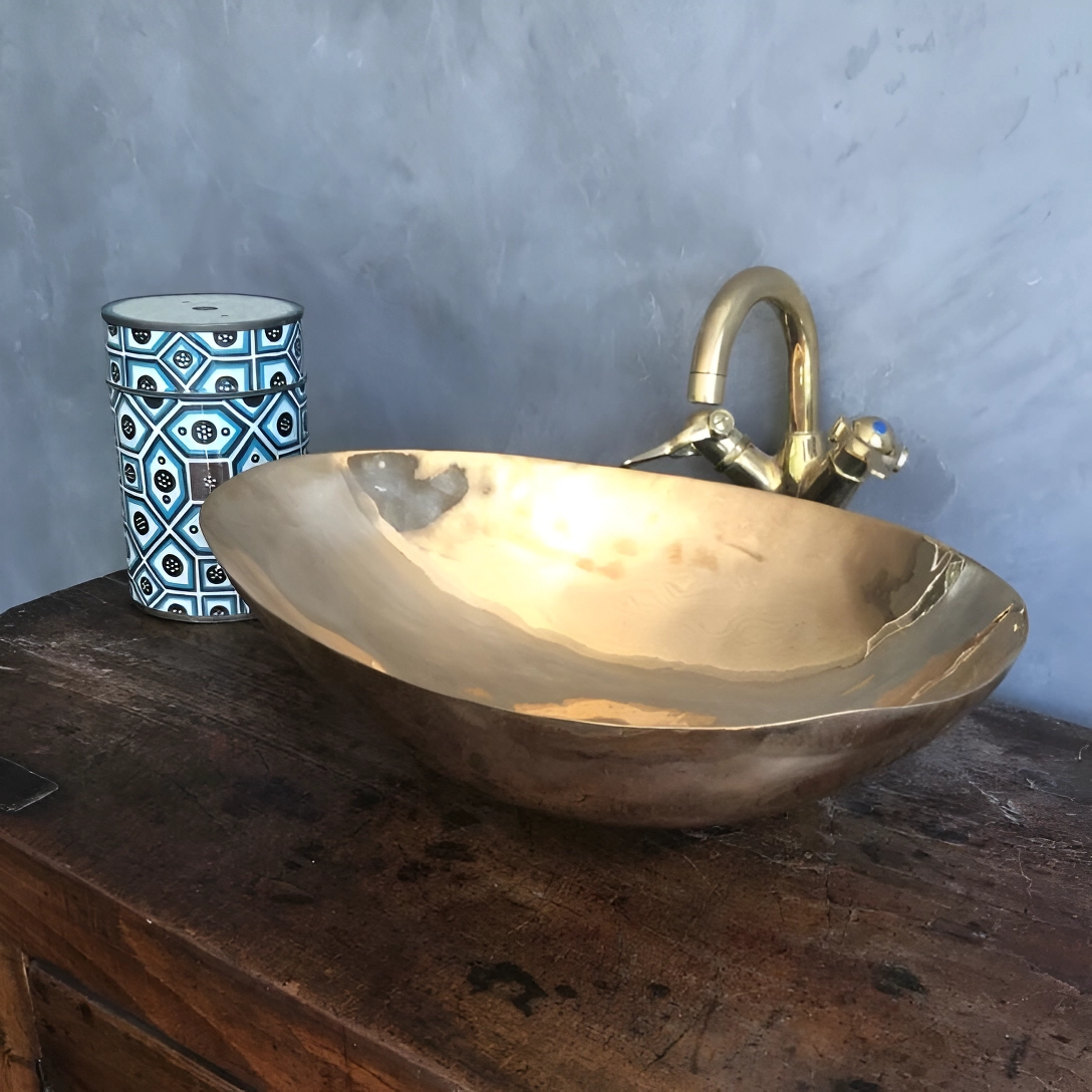 Solid brons handfat organic. Stiltjes egna serie av handfat. Handfat i organisk design. Tunna fina kanter med ojämnheter. Varje handfat är unikt ytan och kvalitén måste upplevas. Bredd ca 32cm, längd ca 49 cm, höjd ca 14 cm på högsta punkt och vikt 8 kg
