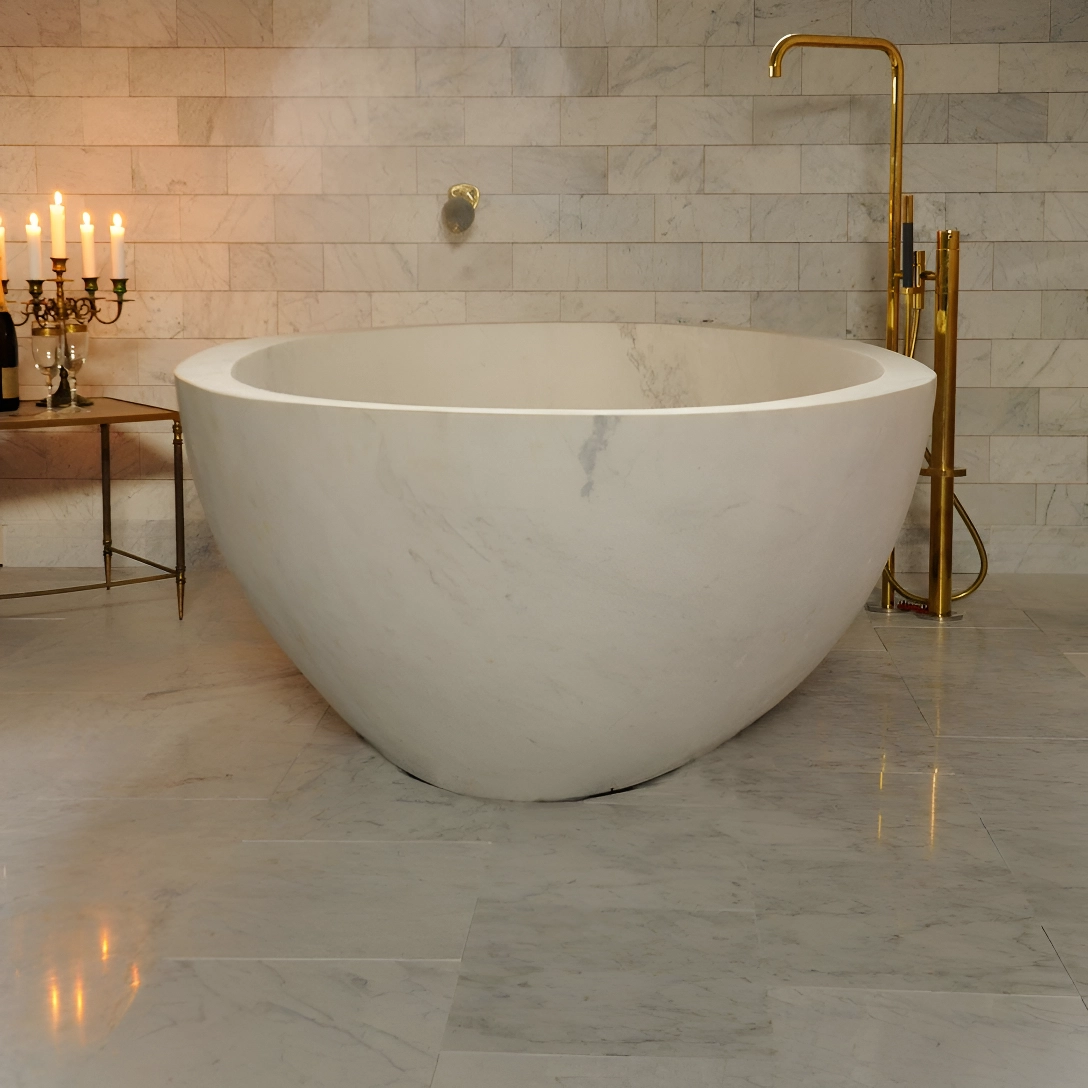 Vår marmor är lika passande för badrum som annan marmor, men vi vill säkerställa att ni är väl informerade innan ni tar ett beslut. Om ni planerar att använda stenen i ett badrum rekommenderar vi att ni läser våra råd under  Material i badrum för att avgöra om det passar er.