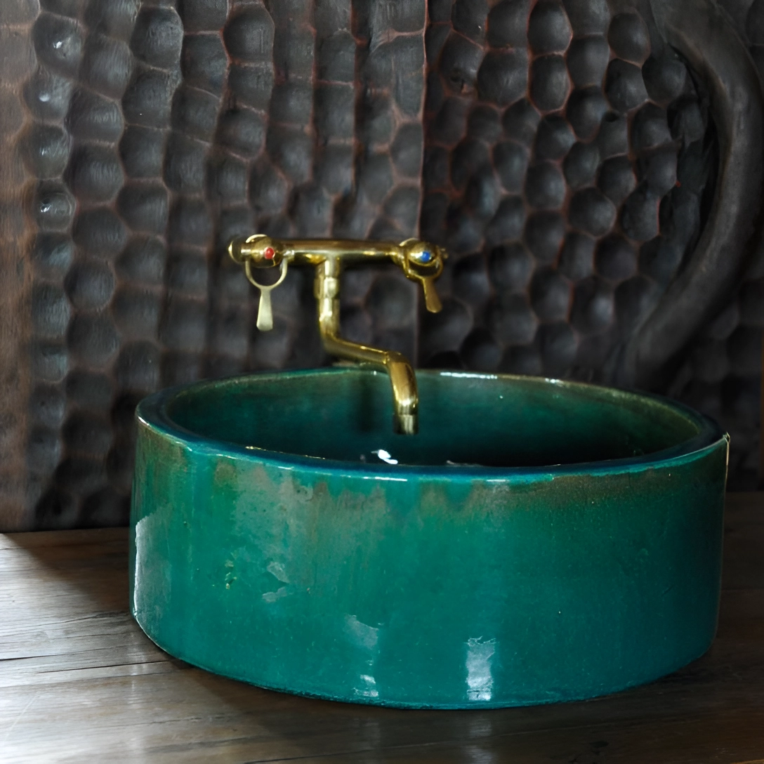 Keramikhandfat. Underbara handgjorda och handglaserade. Inget handfat är det andra exakt likt. Tillverkas per kund, men vi har alltid några på lager eller i våra butiker för direktbeställning. Dessa handfat kan special tillverkas i många av de kulörer som vi gör våra keramikmosaiker . Matcha mosaik med handfat för ett unikt badrum.