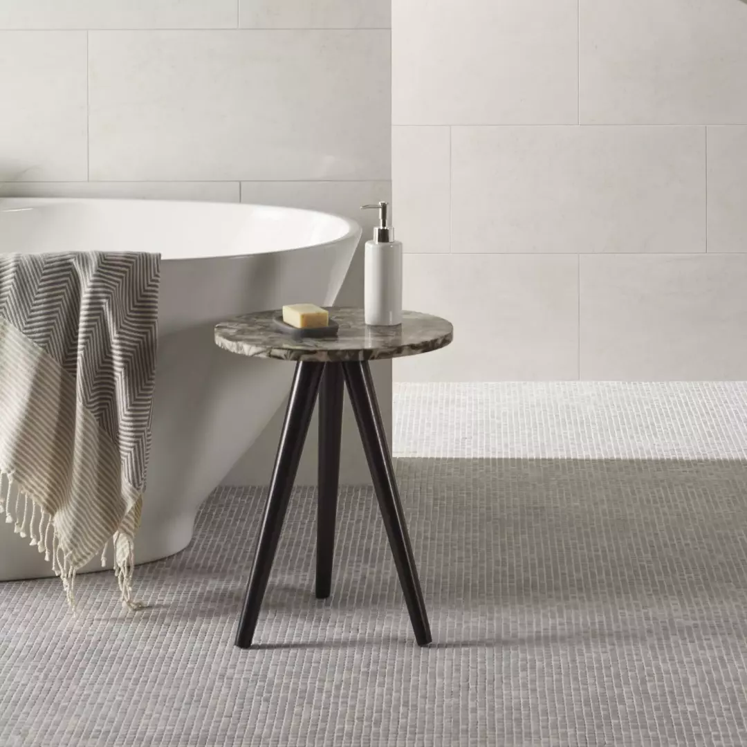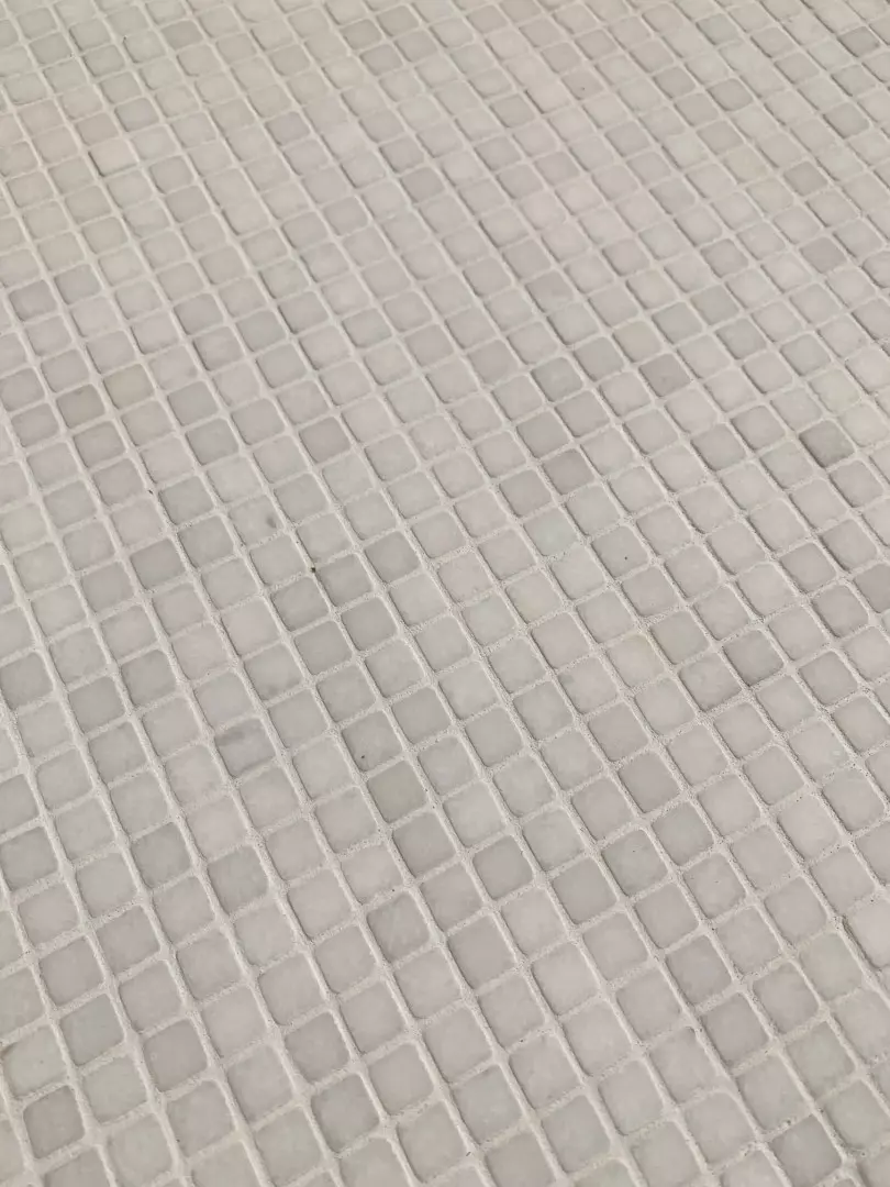 Mini mosaic tumbled light. De tumlade stenarna är 1x1cm och kommer monterad på nät i storleken ca 30×30 cm. Mosaiken är underbar för fötterna att gå på, som massage för både fötter och själ. Tumlade material har också den fördelen att de redan är slitna.