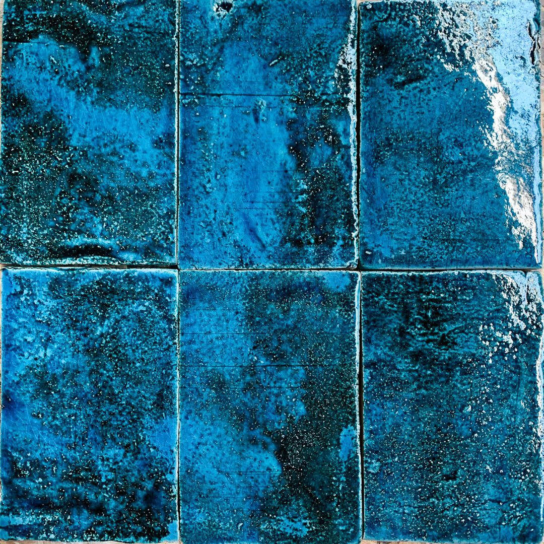Ocean Explosion är ett handgjort kakel där plattorna varierar något i storlek både på bredden, höjden och längden. Fogen kommer att bli olika bred och kanterna på kaklet är ofta lite ”veckiga” som spår efter att de skurits för hand.