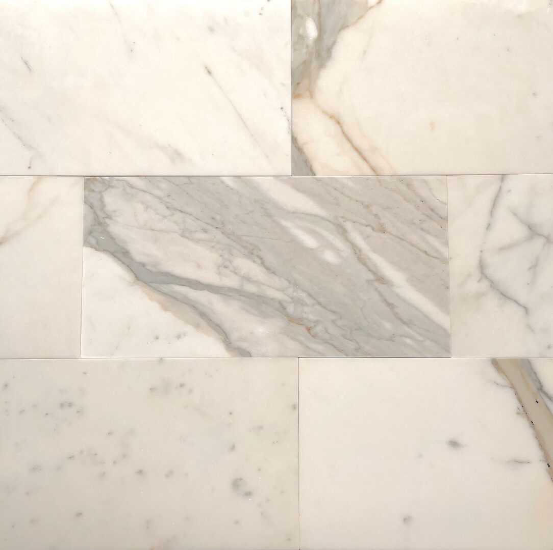 Calacatta marmor: vit botten med marmoreringar i crème-rosa ger en varm unik marmor med en känsla av djup.