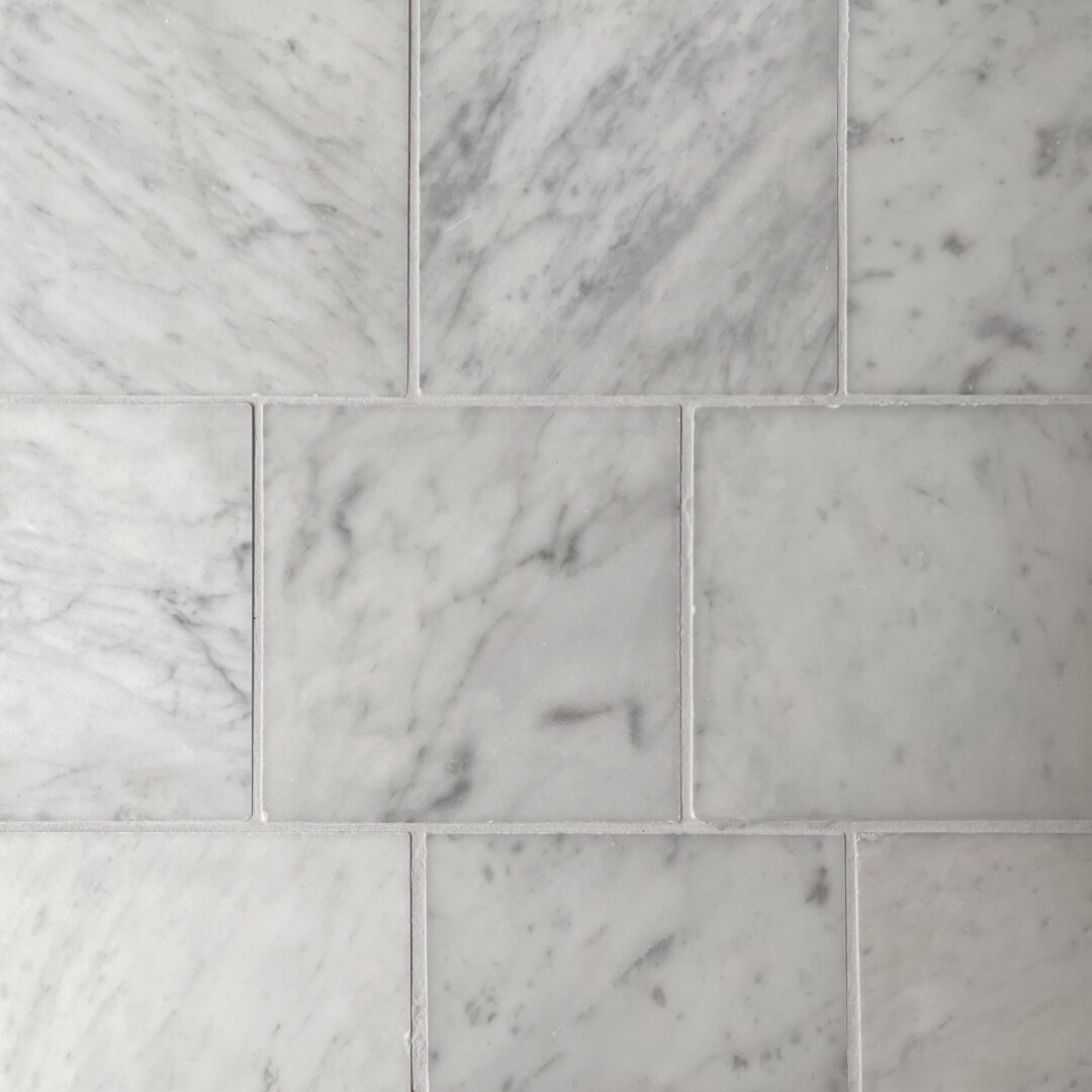 Carrara marmor: vit botten och lagom mycket grå marmoreringar.