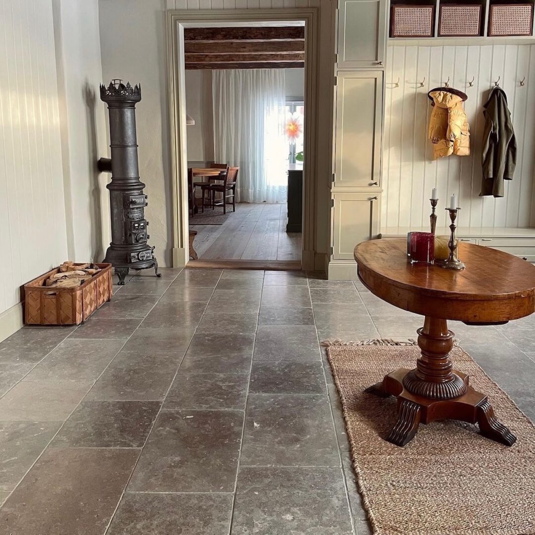 Scandinavian tumlad kalksten är vad vi bäst beskriver som en klassisk kulör. Vi vill att det här golvet ska se ut som ett riktigt gammalt stengolv. För att efterlikna ett äkta gammalt stengolv bör variationen i kulören variera över hela golvet. För maximal variation, kombinera storlekarna 60×40 och 40×40 eller de 4 storlekarna 60×40, 40×40, 20×20 samt 40×20 i det som kallas ” roman pattern”. För en mer enhetlig kulör, men ändå med variation, välj endast en storlek. Tjockleken är ca 2 cm. Var noggrann med att välja plattor från olika pallar vid läggning för jämn färgvariation.