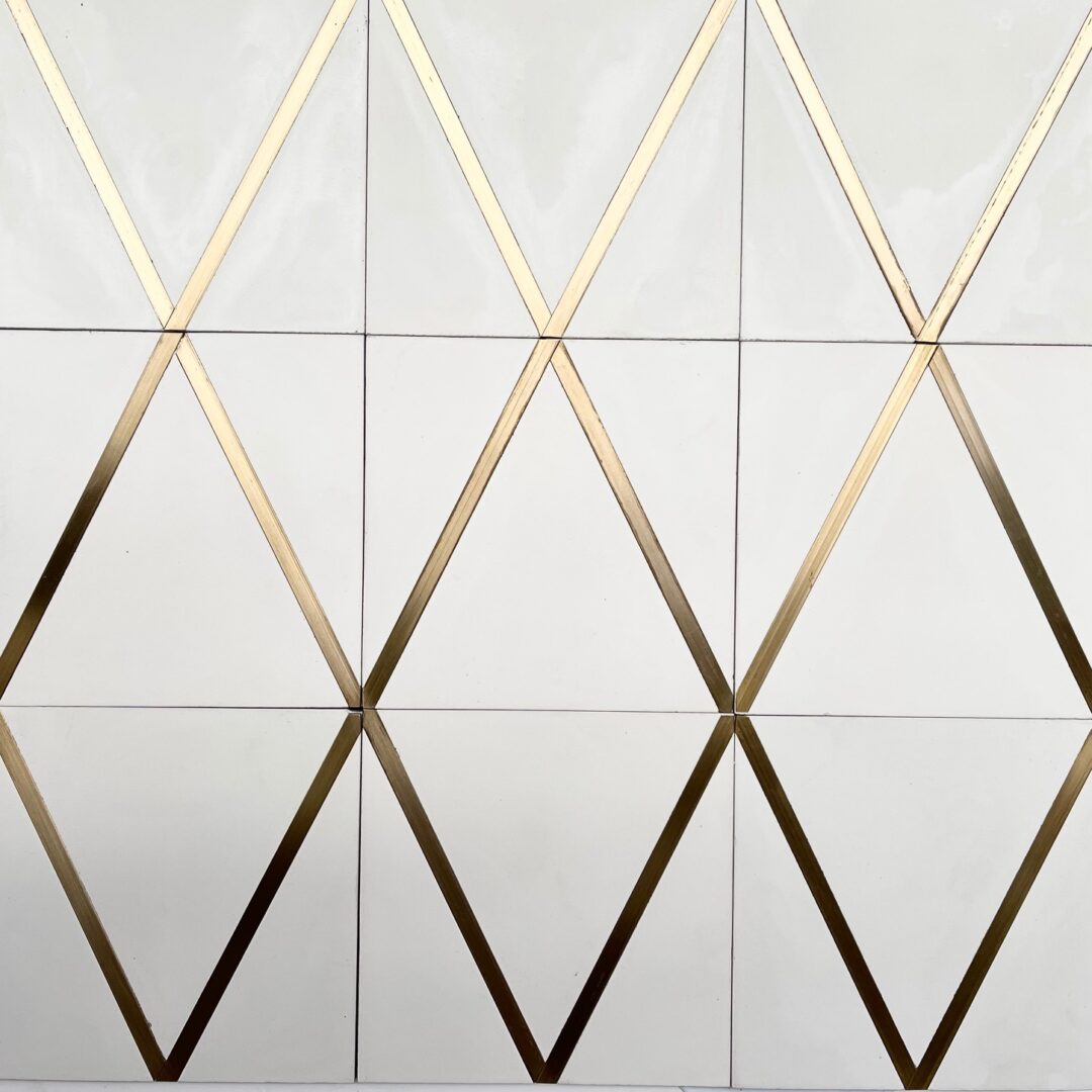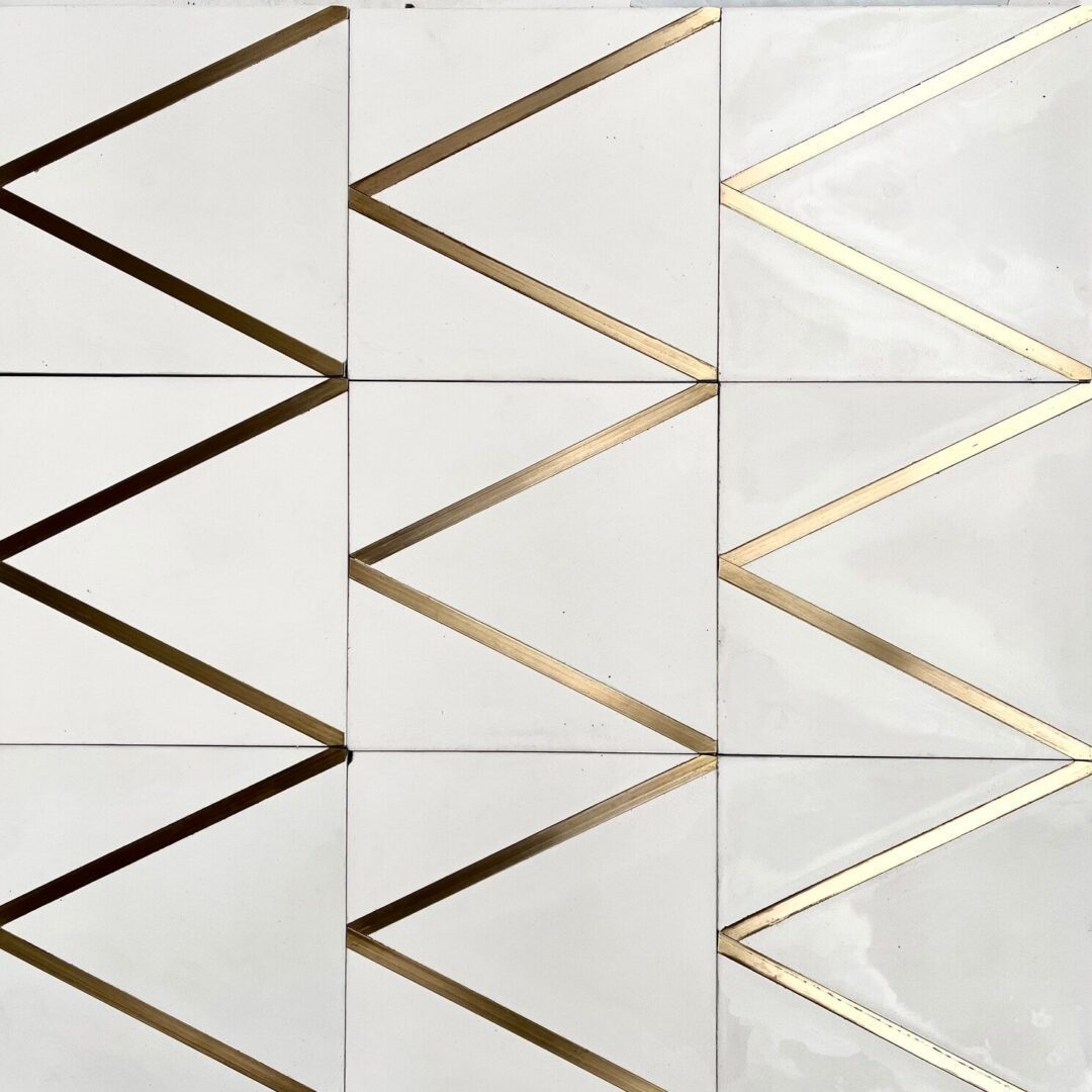 White Brass Stripe. Cementgolv med mässingsinlägg. Ett perfekt exempel på hur lyxigt cement kan kännas. Plattorna är handgjorda, vilket gör att färgvariationer är naturliga och bidrar till deras unika karaktär. Våra cementgolv är mycket finkorniga som ger skarpa kontraster mellan färgerna, samtidigt som de är hårda och slitstarka. Cementgolv är både lättskötta och hållbara, och åldras på ett vackert sätt. De fungerar också utmärkt tillsammans med golvvärme.