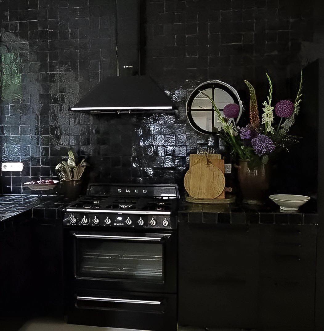 Zellige sätts traditionellt med tunn fog och blir lite ojämn men vackert. Titta på hemsidan hur resultatet