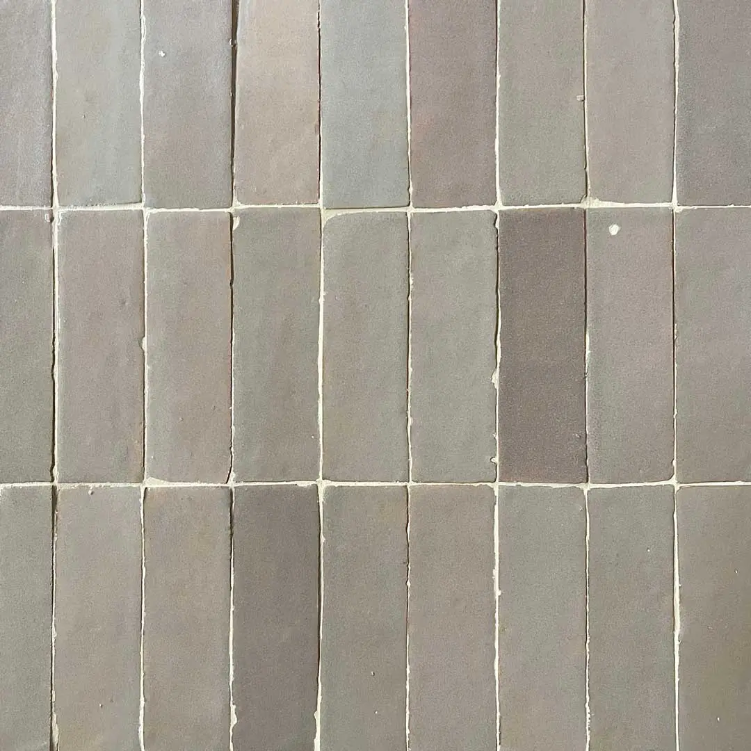 Zellige Hint of pink Elongated fungerar bra både för golv och vägg. Varje platta är ca 4,5 x 14 x 1,5 cm, har mjuka kanter och är inte helt rak. Vår elongated zellige kommer som lösa plattor.