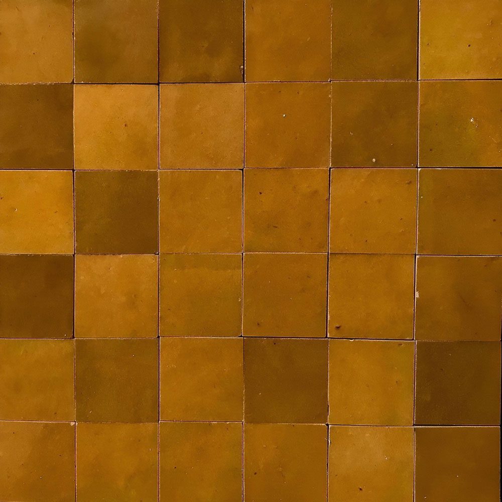 t3: Zellige Mustard har medium texturskillnad. Tydliga skillnader mellan de olika plattorna.