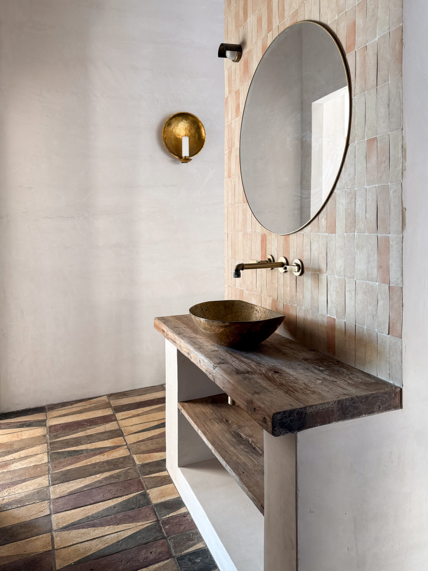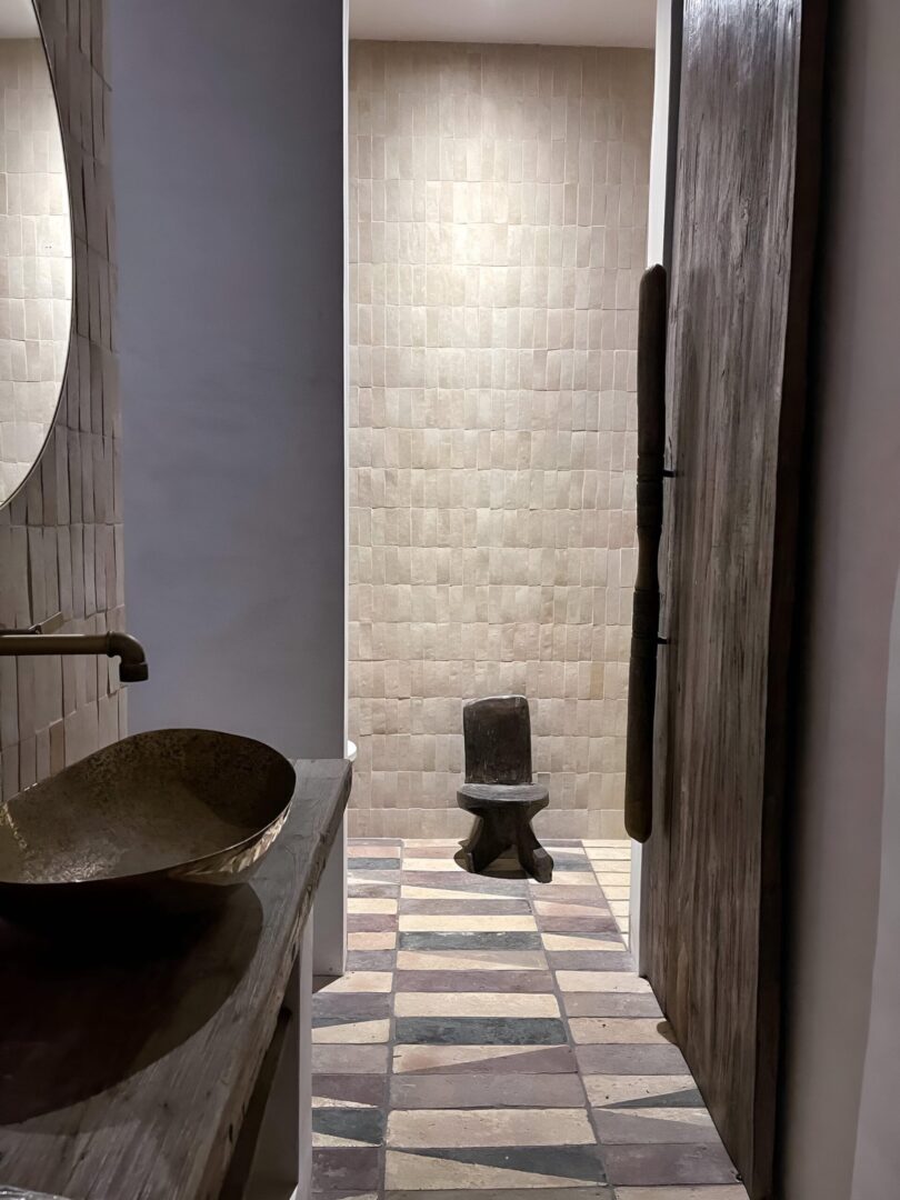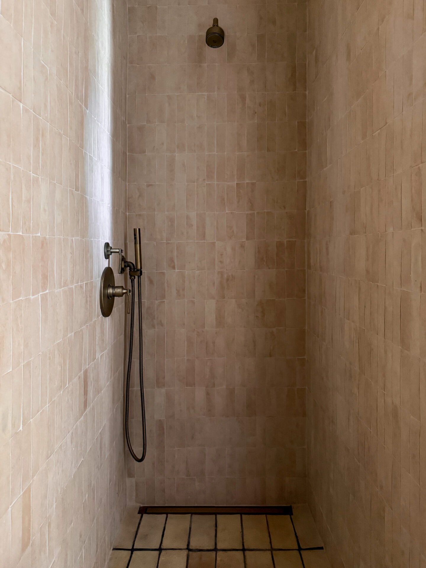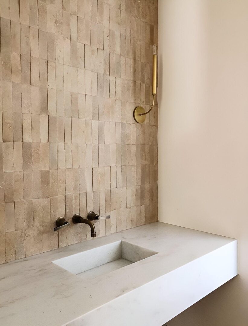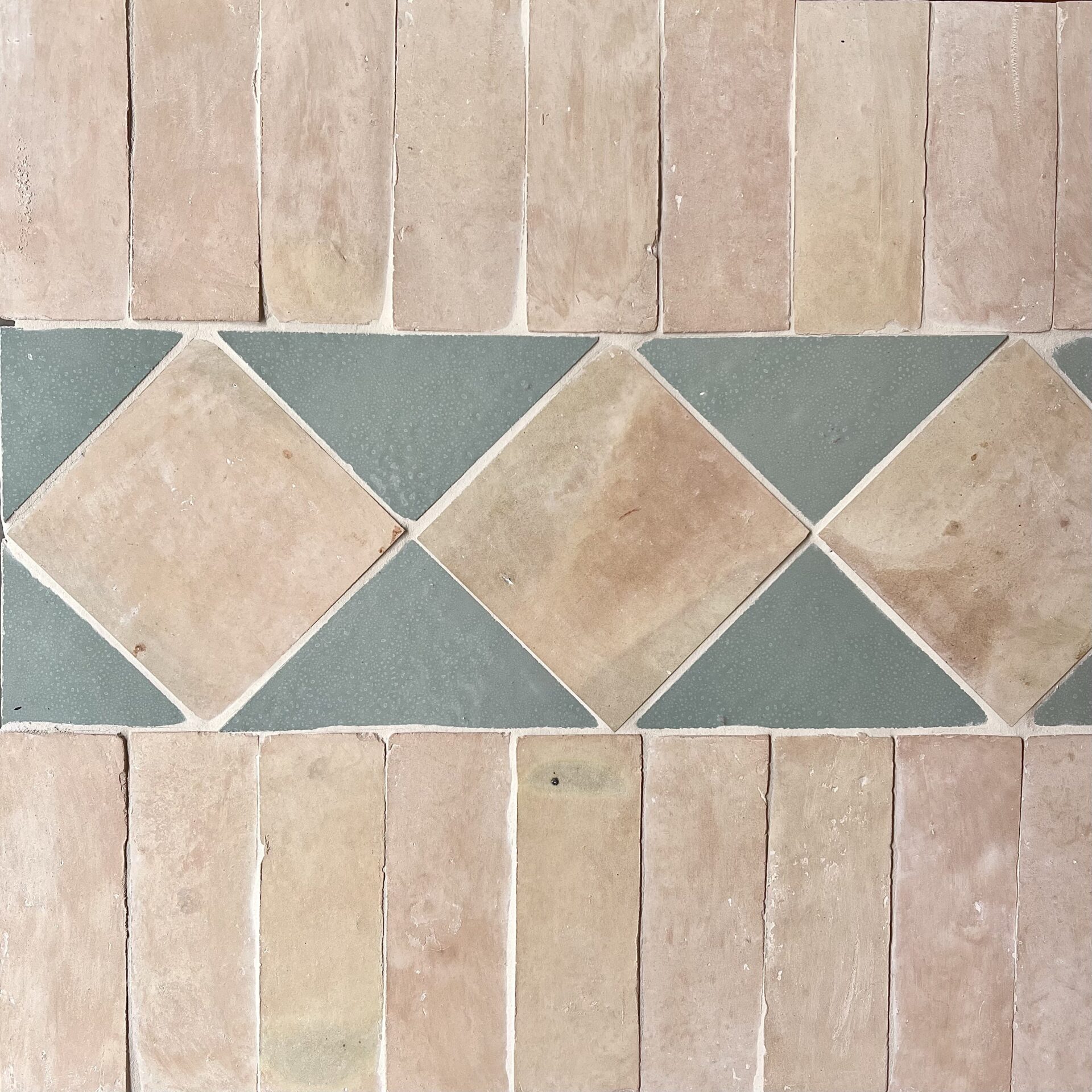 Zellige Natural Elongated fungerar bra både för golv och vägg. Varje platta är ca 4,5 x 14 x 1,5 cm, har mjuka kanter och är inte helt rak. Vår elongated zellige kommer som lösa plattor.